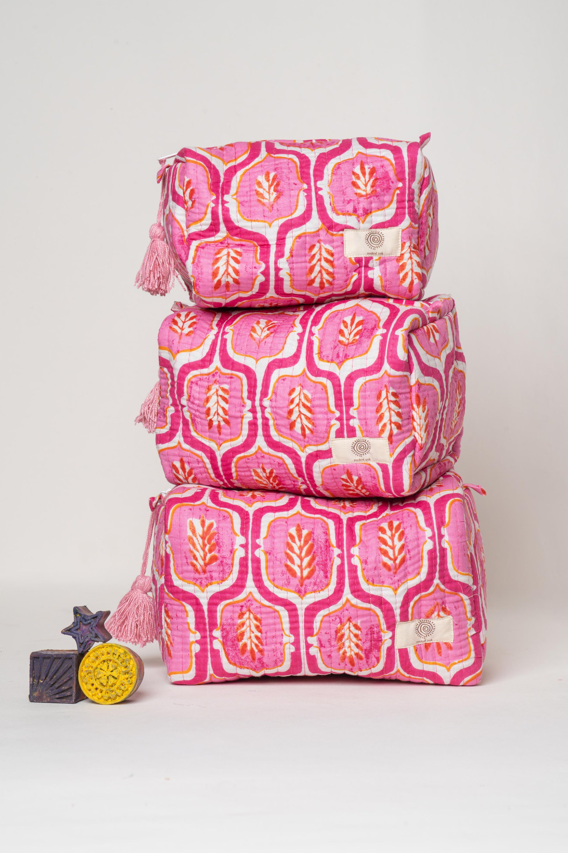Rooted Ink – Jaipur Block-Printed Toiletry pouches (Set of 3)